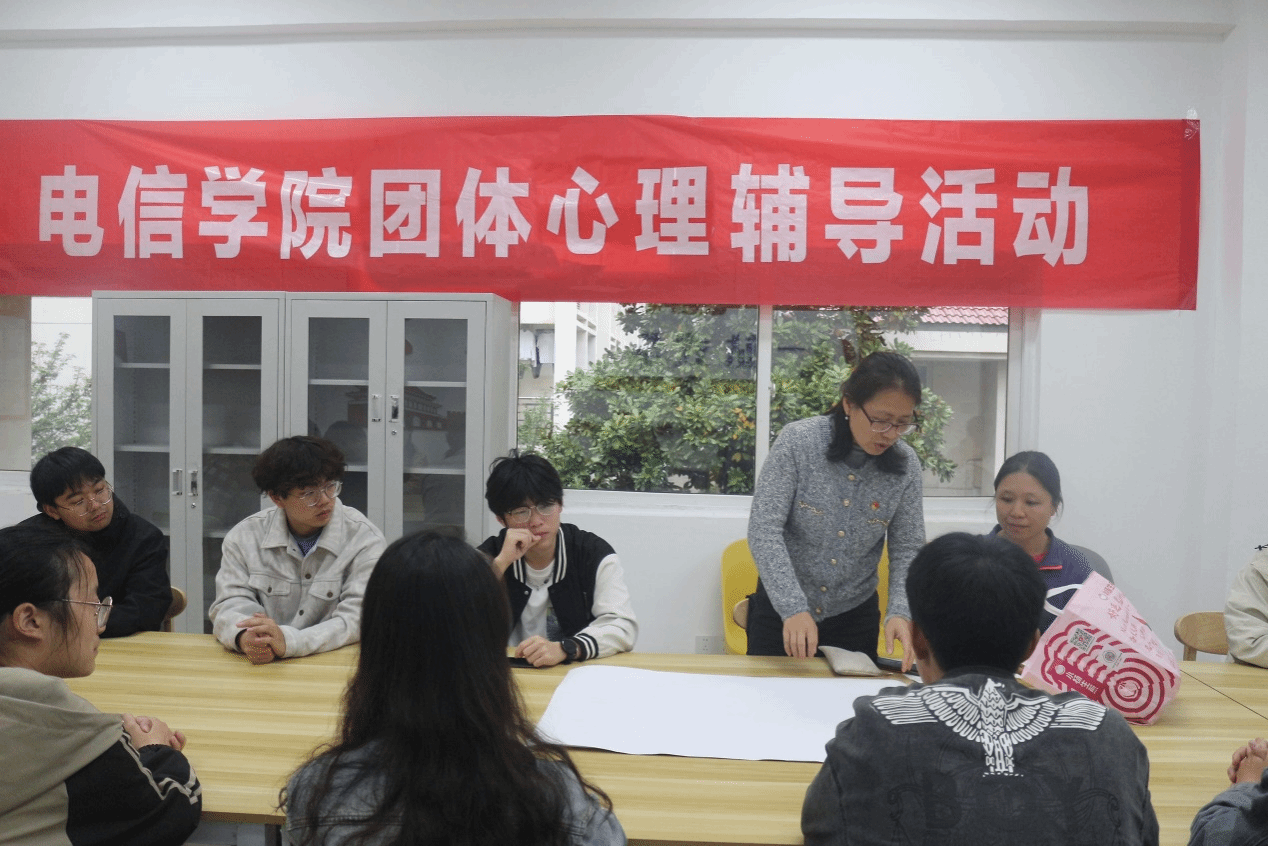 为提升大学生团队协作能力,4月17日下午,电子信息工程学院于南区07栋“一站式”学生社区中心开展了团体心理辅导活动。本次活动由学院党委副书记陈智慧策划主持,共有近20名学生会成员报名参加。