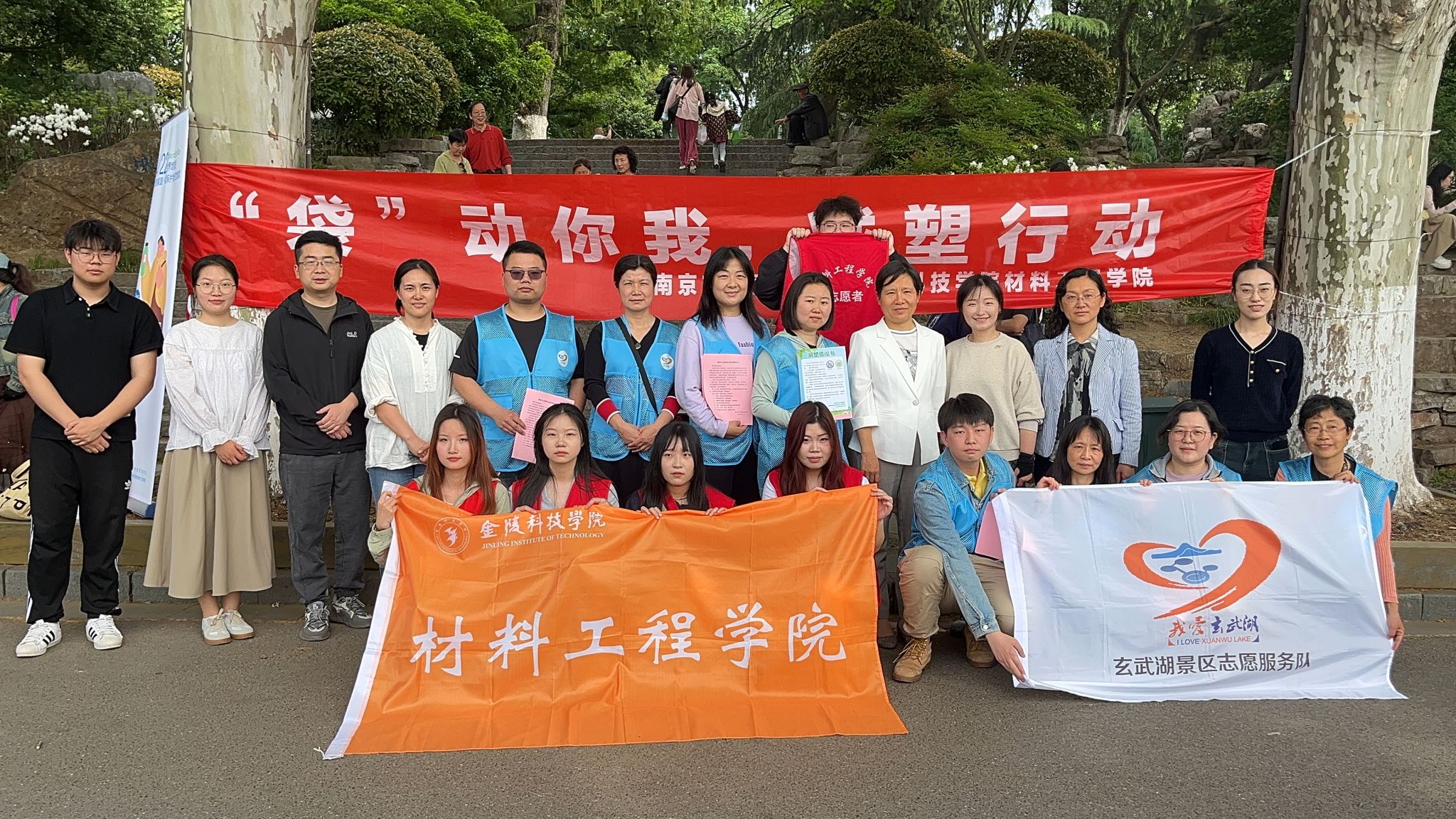 在2024年第55个“世界地球日”来临之际,为进一步引导社会公众尤其是青少年积极践行绿色生活理念,让绿色、低碳、环保成为更多社会公众的时尚追求,球王会体育官方网站材料工程学院联合南京市玄武湖景区4月21日下午在玄武湖畔开展以“‘袋’动你我,减塑行动”为主题的环境保护宣传活动。玄武湖公园管理处党委副书记王鹤、组织人事部部长张唯,副部长程程,材料工程学院党委副书记韩铖、学工办主任许倩颖、团总支书记邵云龙、辅导员王敏,以及两家单位的部分工作人员参加活动。