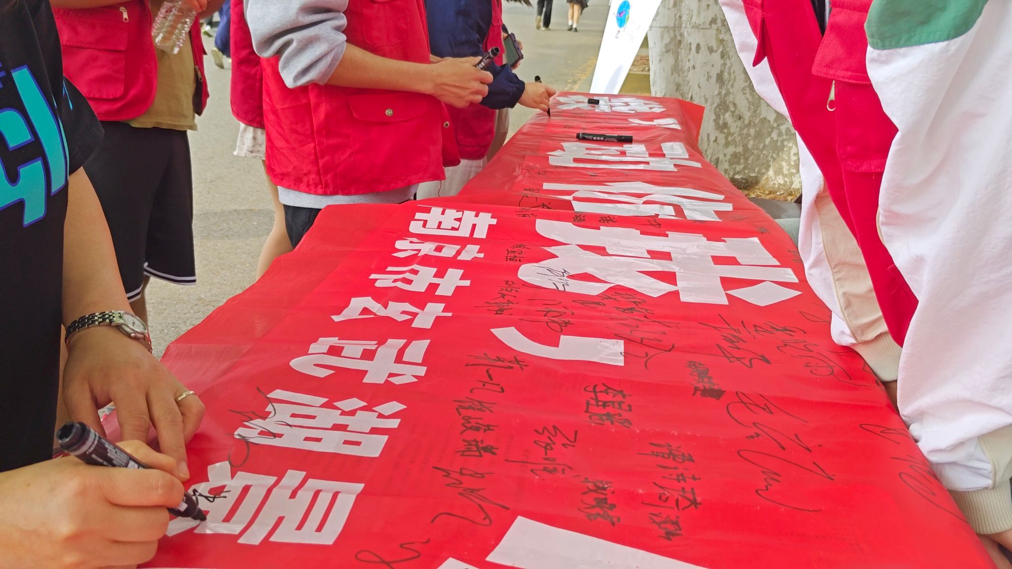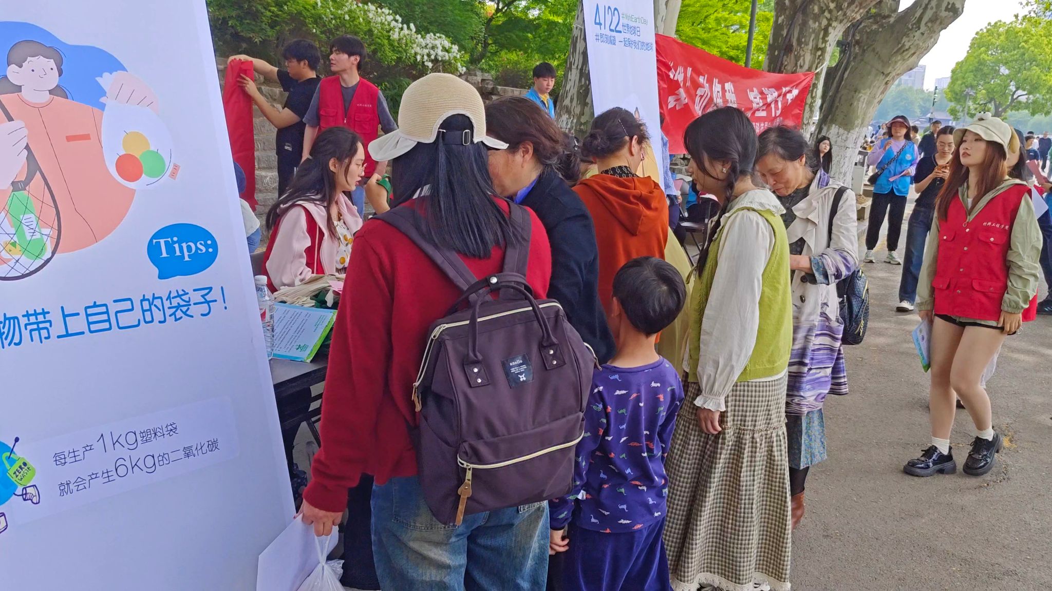 活动得到了玄武湖公园管理处的大力支持,玄武湖公园的社会志愿者和材料工程学院的大学生志愿者在现场一起开展了环保知识问答、分发“减塑”倡议书、组织签名等活动。活动吸引了玄武湖景区众多游客驻足参与,男女老少齐上阵,积极参与答题并纷纷签名,现场气氛活泼热烈,大家纷纷表示要践行绿色发展理念,减少白色污染,为保护我们的地球贡献自己的力量。