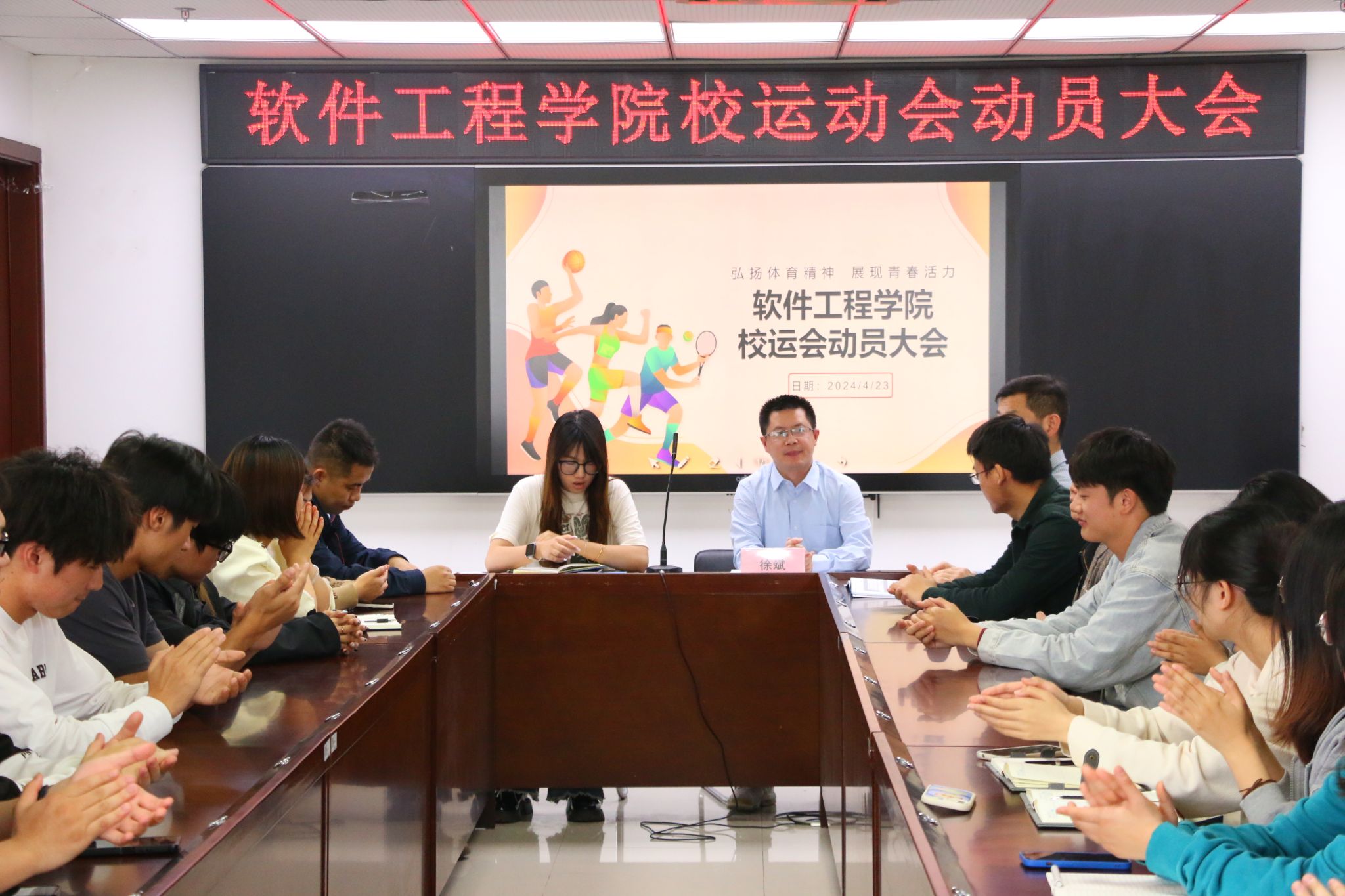 为迎接即将开展的球王会体育官方网站第二十一届田径运动会,充分鼓舞我院运动员的士气,4月23日,软件学院在科技楼2-423会议室顺利召开了运动员动员大会,院党委副书记徐斌、全体辅导员出席本次会议,学院学生会干部、全体参赛运动员和志愿者参加,会议由院团总支学联轮值主席余舒沁主持。