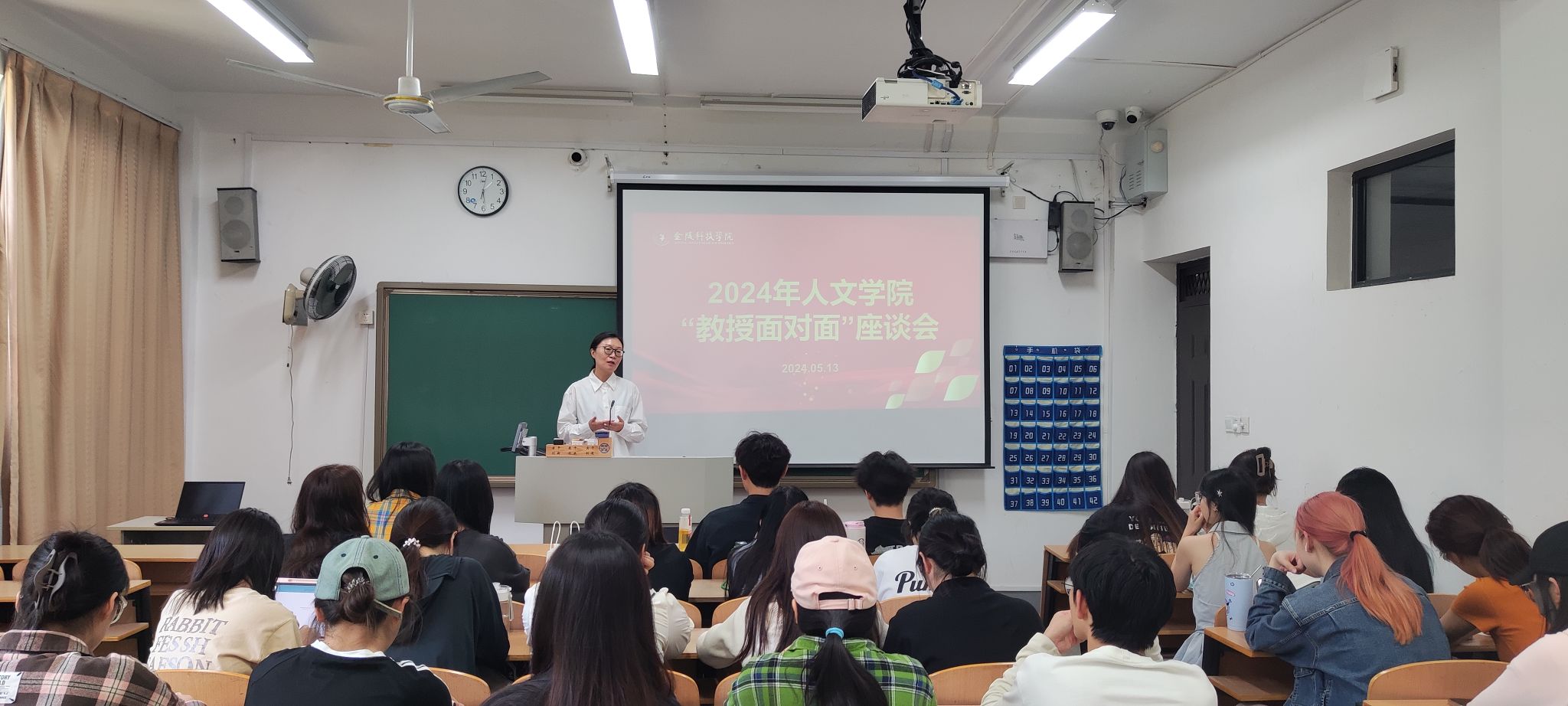 为进一步增强学生对专业的认知,明确学习中的重难点,明晰自身职业发展方向,人文学院于5月13日下午在教学楼106举办了2024年第一期“教授面对面”座谈会。本次活动邀请了旅游管理专业副教授戴欣佚老师作为主讲嘉宾,2022级和2023级旅游管理专业同学参加了活动。