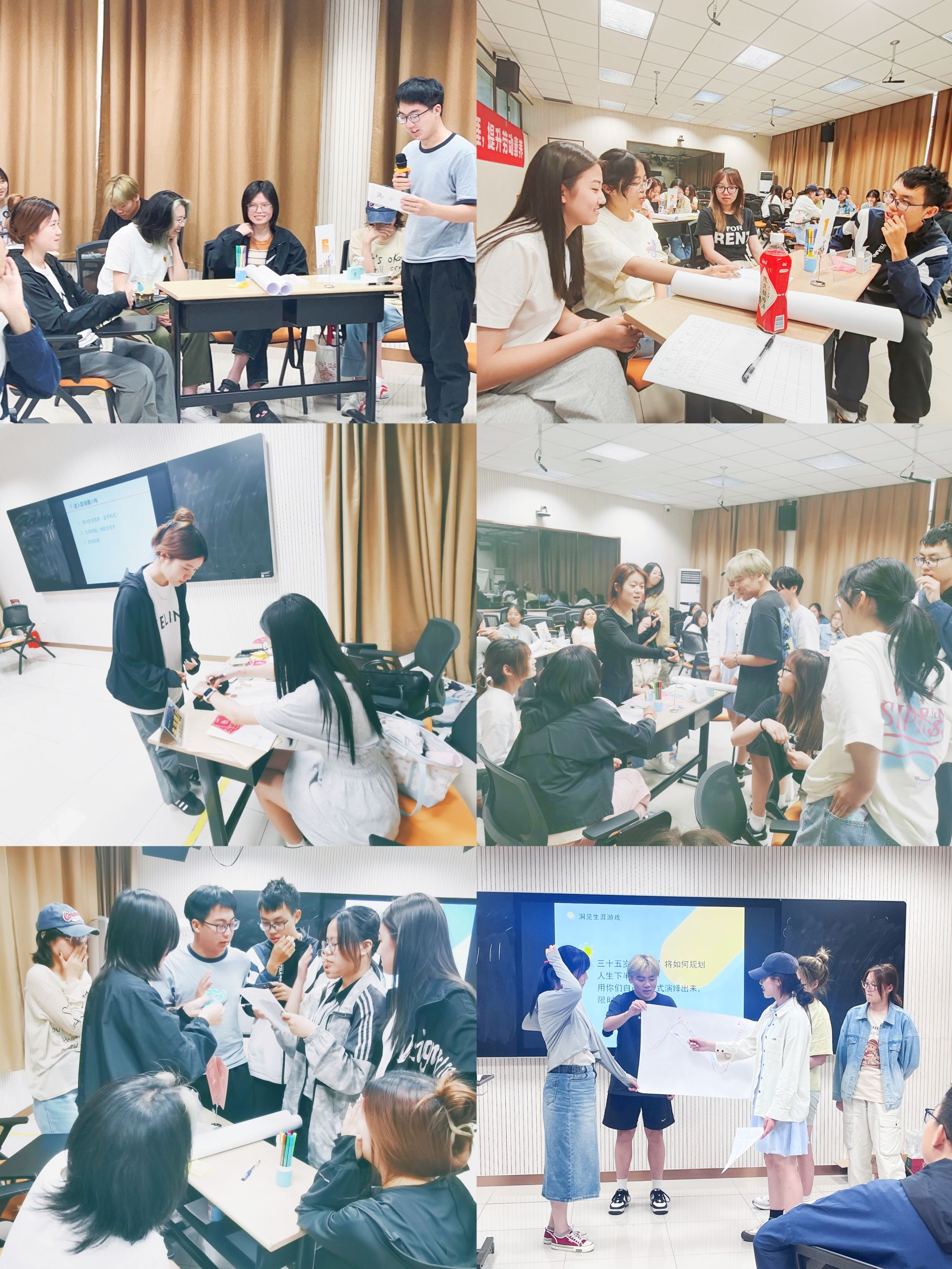 本次活动以游戏的形式展开,30名同学用半天的时间模拟了人生前半生的大学和职场生涯。从人物的出生、能力卡牌购买、学涯发展、职业选择、生活费用缴纳、经济大萧条应对,到最终的资产结算和人生回顾,每个环节都紧密围绕生涯规划和劳动实践展开。让同学们身临其境感受人生的跌宕起伏,深刻体验了不同职业带来的挑战和机遇。活动最后,每个小组成员均上台回顾了前半生,并规划了未来的人生道路。辅导员杨婷也引导全体学生思考本次活动带来的生涯觉察,让大家深刻认识到生涯规划和提升劳动素养的重要性,为本次活动画上了圆满的句号。