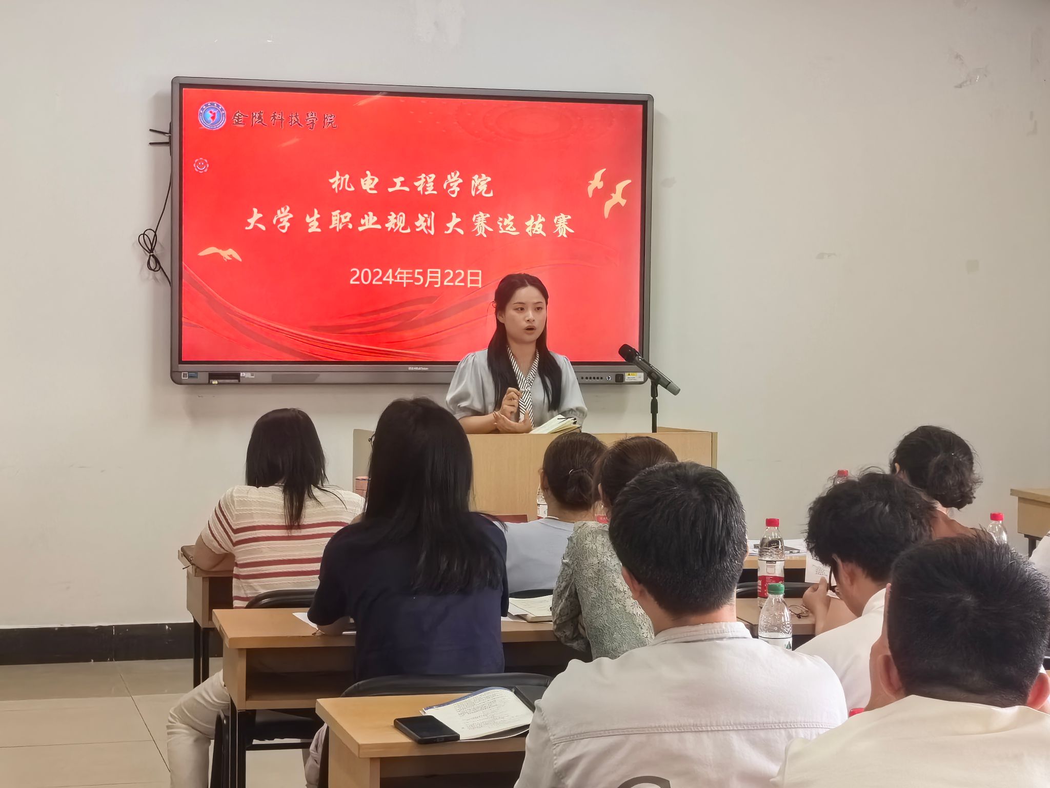 为进一步完善个人职业规划体系、明确职业发展方向、清晰自我定位,5月22日下午,机电工程学院在工科楼C504举办大学生职业规划大赛院级选拔赛。本次大赛邀请学院党委副书记张蓉、南京中竞科智能科技有限公司总经理秘书、项目经理盛娟以及全体辅导员担任评委。70余名学生代表观摩了本次比赛。