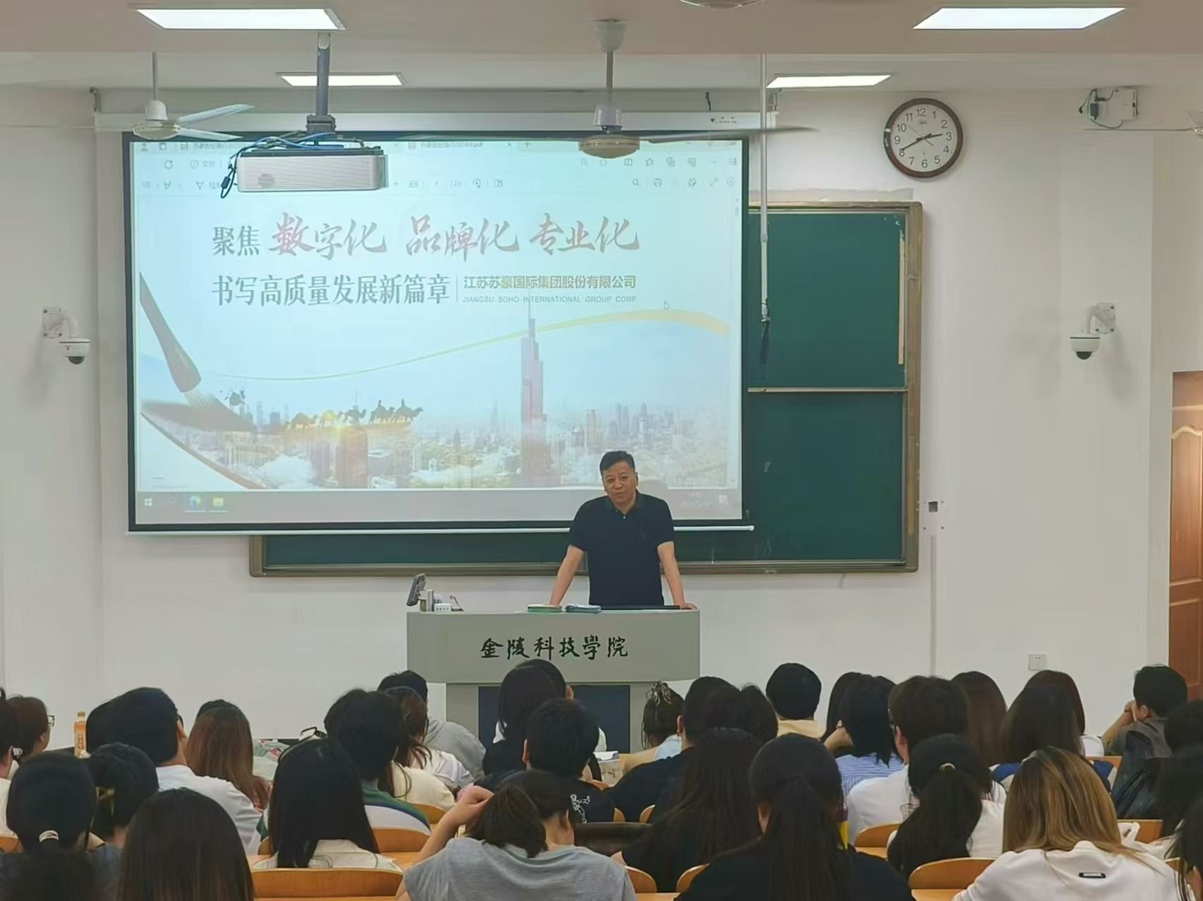 推进会后,苏豪丝绸有限公司在8300面向服装系全体学生召开宣讲会。黄天舒为同学们介绍了企业文化、发展历程、主营业务,并就大家关心的职业发展路径、薪资待遇、岗位招聘要求等,详细进行了解答。他希望同学们树立正确的就业价值观,重视职业生涯规划,着力提升自己的就业竞争力。包德金鼓励同学们抓住校企合作提供的招聘、实习机会,在实践中不断赋能自身发展,做好个人发展规划。会后苏豪丝绸有限公司开展了专场招聘会,15位毕业生现场进行了面试,8位毕业生进入企业岗位录用考核。
