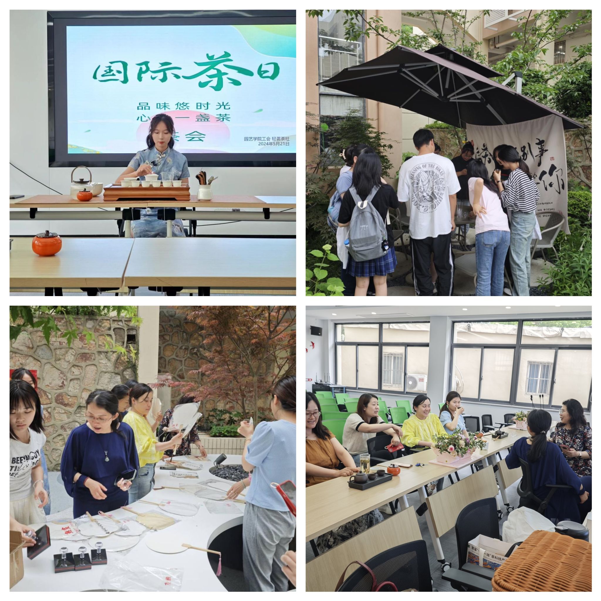 正值国际饮茶日,为进一步宣传茶文化,细品博大精深的文化宝藏,领略中华传统之美。园艺园林学院工会联合院学生社团轻茗茶社于5月21日下午13:30在农科楼会议室102共同举办“品味悠时光,心向一盏茶”主题茶会活动。师生们齐聚一堂,共同欣赏茶艺表演、品茶、制扇,参与一场传统与现代碰撞的茶会,体验传统的雅致和现代的清新。