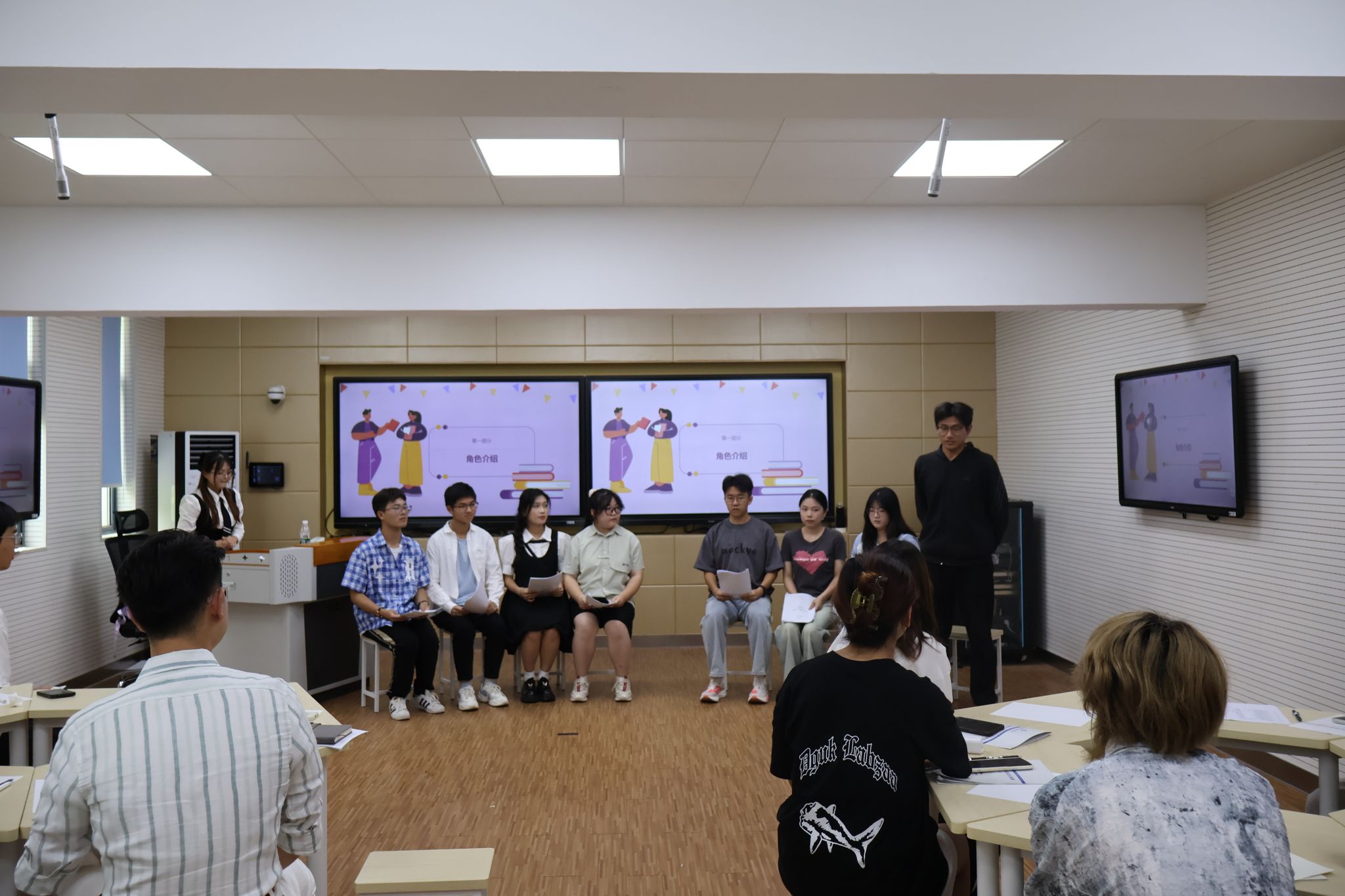 522日下午,人文学院于幕府校区崇文楼408教室举办了原创剧本《在成为遗憾前去沟通吧》的剧本围读活动。人文学院团总支书记高欢欢老师、辅导员靖晶老师、汪新老师,第三届金陵剧社社长17行政管理学专业王业薪,与30余名对剧本有浓厚兴趣的观众参与了活动。
