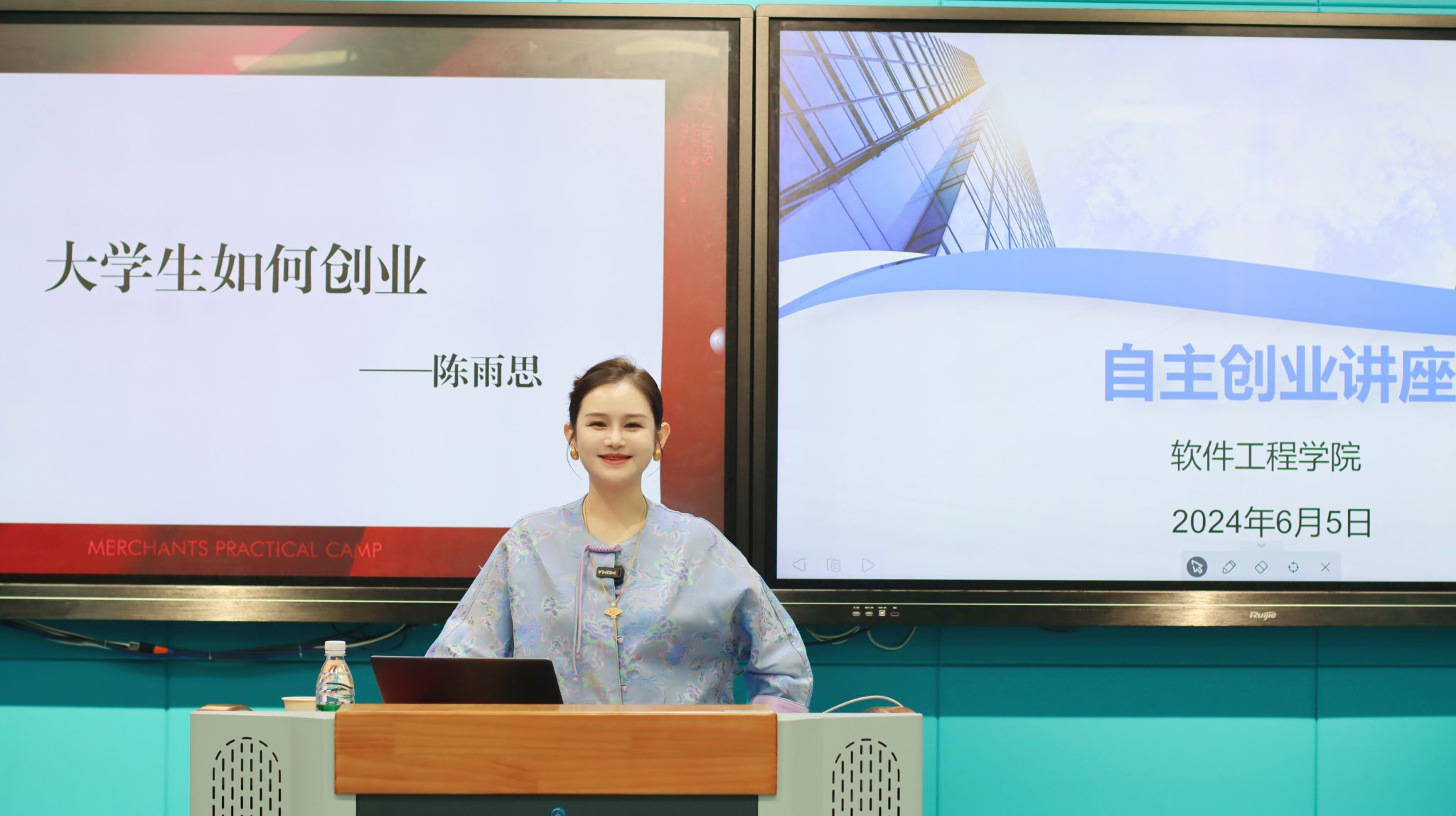 为激励和启发学生们的创业激情,提高学生们的自主进取意识,6月5日下午,软件工程学院在科技楼2-226举办了自主创业讲座。本次讲座邀请了集美司品牌创始人陈雨思女士作为主讲人,分享她的创业经验与心得体会,受到了广大师生的热烈欢迎和积极参与。