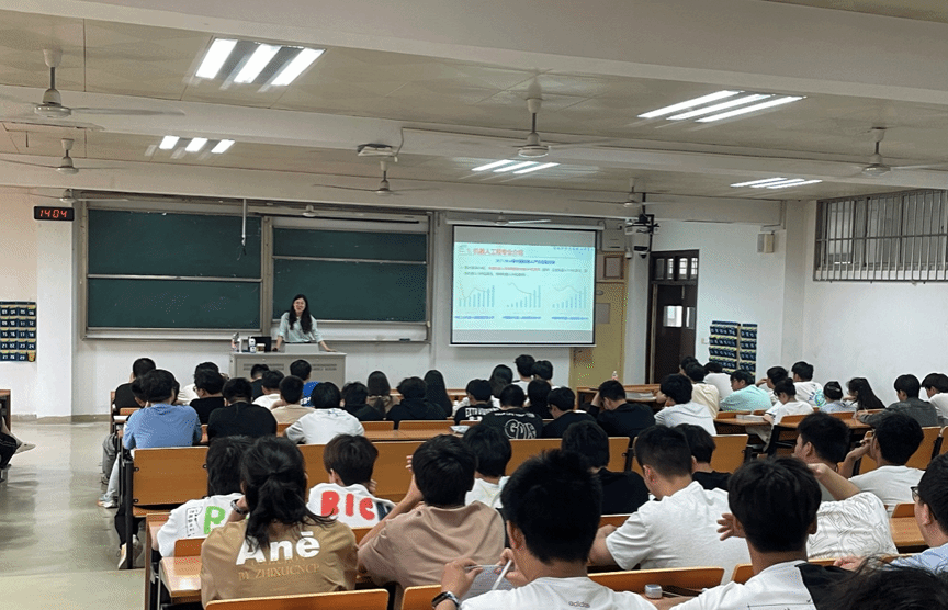 为了进一步帮助同学们深化专业认识,做好成长规划,明确奋斗目标,激发学习活力,智能科学与控制工程学院于6月5日下午14:00在1332教室组织了“教授面对面”机器人专场讲座活动。本次讲座特邀陈维娜副教授主讲,辅导员黄伟老师及22级、23级机器人工程专业全体学生参加了本次讲座。