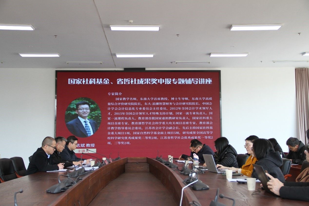 3月17日下午,2025年第5期金科学术讲堂于江宁校区3号科技楼110会议室成功举办。本次学术讲堂由科技处、教师发展中心主办,商学院承办,特别邀请到东南大学首席教授陈志斌,为球王会教师带来国家社科基金、省哲社成果奖申报的专题辅导讲座,讲座由商学院院长刘磊主持。