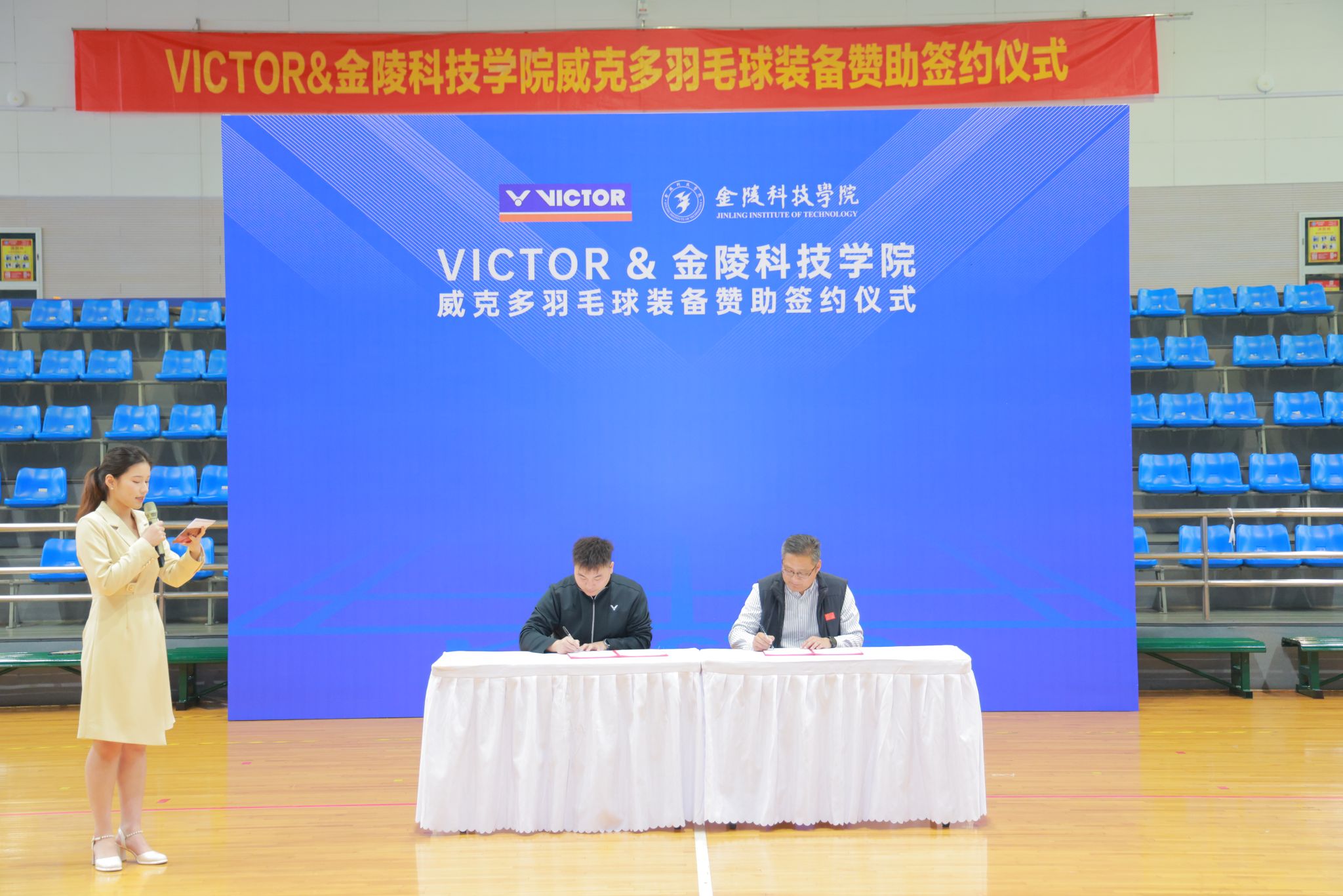 近日,球王会体育官方网站羽毛球队与江苏威克多体育用品有限公司(下面简称威克多)的装备赞助签约仪式在体育馆隆重举行,体育部主任沈辉老师、校羽毛球队教练员徐永楠、郭威,校羽毛球队全体队员,与江苏威克多体育用品有限公司苏皖大区经理赵洪亮共同出席了此次签约仪式。