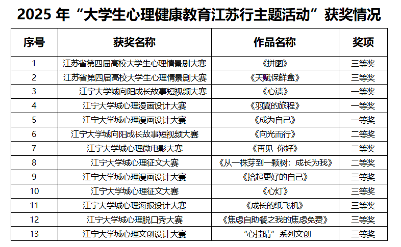 活动期间,球王会组织师生参加了“校园危机中的家校工作”交流研讨会、江宁大学城首届“高校学生心理骨干工作研讨论坛”等,汲取前沿理念与实践经验;依托江宁大学城的区域心理健康教育资源,承办了江苏省江宁大学城大学生心理健康教育研究中心的高校专兼职心理咨询师督导活动,有力促进了专业队伍能力提升;积极搭建省、区级心理活动平台,广泛动员并组织学生参加了江苏省和江宁大学城各级各类比赛,斩获多项荣誉,成果斐然,提升学生心理健康水平。