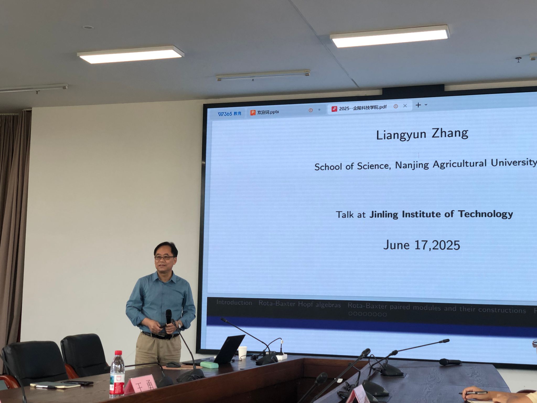 王栓宏教授作题为《Weak Algebraic Quantum Hypergroups》的报告,介绍了一类无限维代数--乘子代数上的Pontryagin对偶的最新研究进展,并以自身为例生动介绍了为发表高质量论文而开展的“八年抗战”,鼓励在座的教师和学生凡事不轻言放弃;张良云教授报告的题目是《Rota-Baxter Hopf algebras and Rota-Baxter paired Hopf modules》,介绍了Rota-Baxter Hopf代数理论的发展历程和研究热点内容;李立斌教授在题为《Current trends in representation algebra》的报告中介绍了代数表示理论的发展趋势。