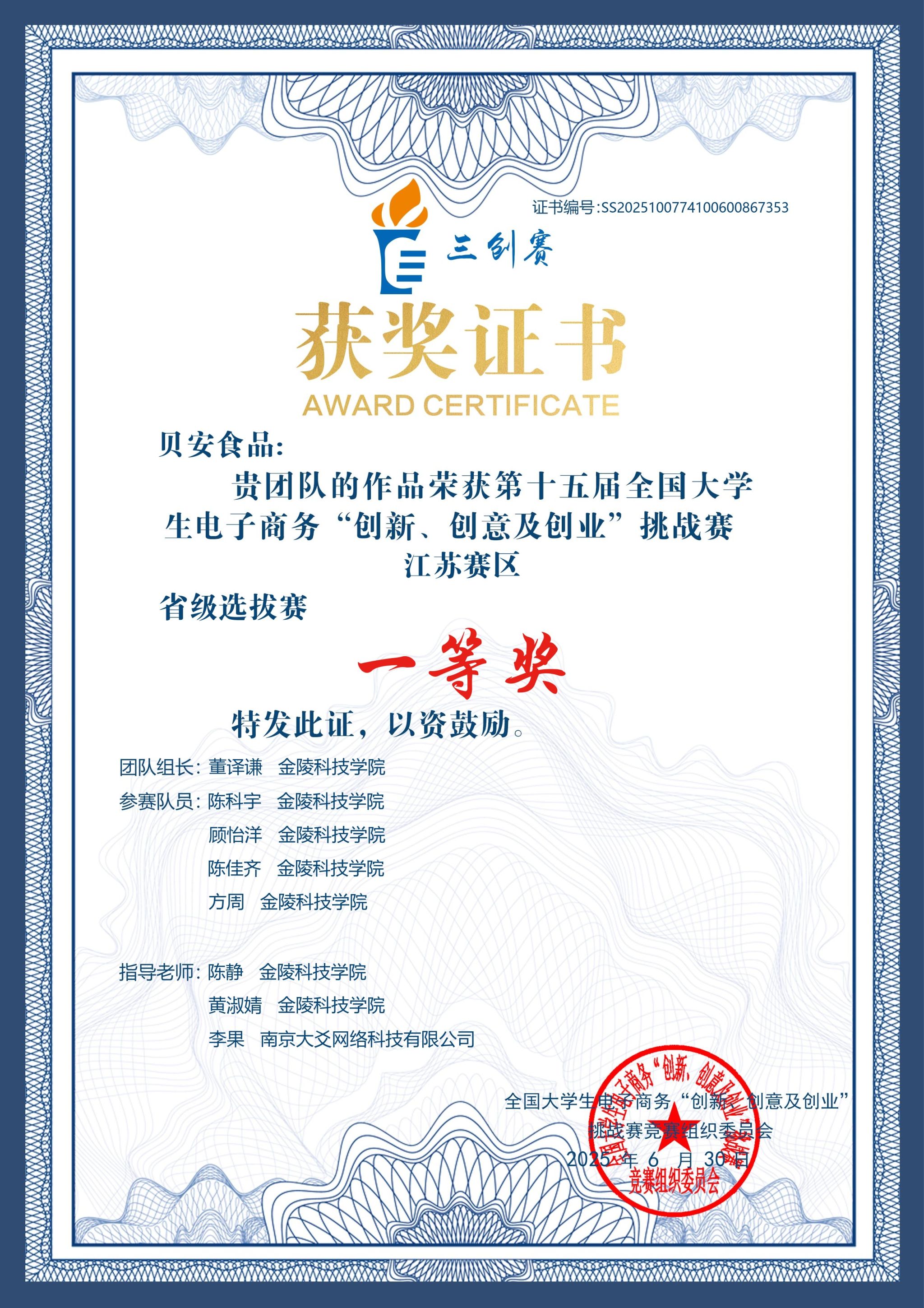 近日,第十五届全国大学生电子商务“创新、创意及创业”挑战赛圆满落幕。球王会动物科学与食品工程学院黄淑婧、陈静等老师指导的“贝安食品”学生团队,凭借项目《猪事顺意——贝安食品纯净猪肉销售平台》脱颖而出,荣获江苏赛区一等奖。