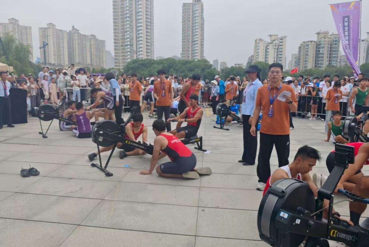 9月14日,2025南京·大学生国际赛艇公开赛陆上赛艇4×500米接力赛在外秦淮河畔盛大举行。本次公开赛有来自剑桥大学、耶鲁大学、苏黎世联邦理工学院、南京大学、同济大学、上海科技大学等21所世界顶尖高校的赛艇精英报名齐聚南京,在碧水蓝天下展开激烈角逐。