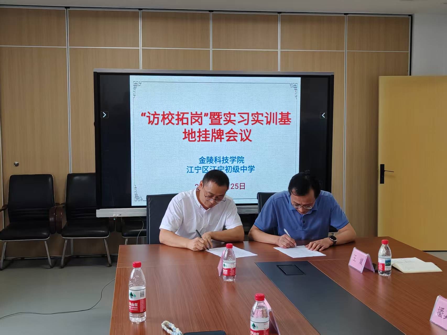 近日,球王会理学院党总支书记雍海龙,副院长魏广华、刘平等一行赴南京市江宁区江宁初级中学举行实习实训基地签约暨揭牌仪式。江宁初级中学校长朱吉兵、副校长刘仲平等热情接待。