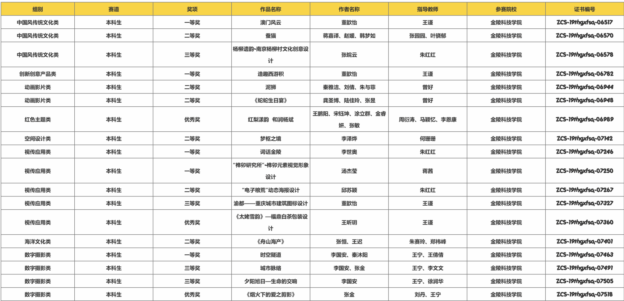 省赛获奖名单