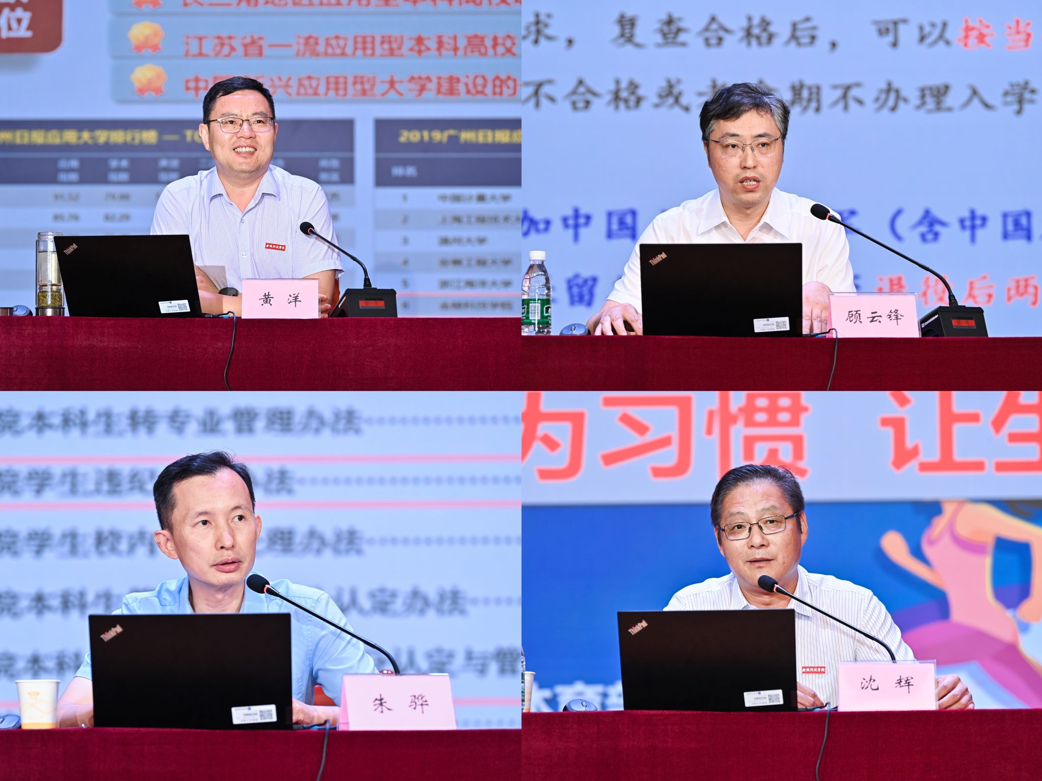 黄洋由“球王会体育官方网站是谁”切入主题,解读了球王会办学与发展彰显出的中国特色新型大学品质,并通过各种案例讲解对大学生提出了增强国家安全意识和共同维护国家安全的具体要求。顾云锋清晰解读了学籍管理规定及相关的配套文件,倡导学生秉持金科精神,树立良好学风。朱骅、沈辉和王耘为学生做教育管理相关制度解读与素质拓展活动介绍,希望同学们在遵守校纪校规的同时也充分利用校内外育人基地、线上线下育人平台等各类高校资源,积极参加实践、爱上体育运动、打开国际视角,努力成为德智体美劳全面发展的社会主义建设者和接班人。王志林、金鑫和高磊几位专家通过鲜活的案例和生动的语言,将心理健康知识、生命健康疾病防控知识和反电诈安全知识融入学生心中,全面提升学生的综合素质。