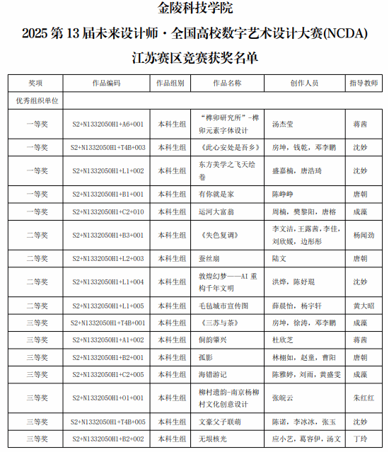 近日,第13届未来设计师·全国高校数字艺术设计大赛揭晓,球王会体育官方网站动漫学院获得江苏省赛区十六项奖项(其中一等奖五项),国家总决赛四项奖项。球王会获得优秀组织奖,沈妙、唐朝获得优秀指导教师,成藻获评为优秀组织教师。