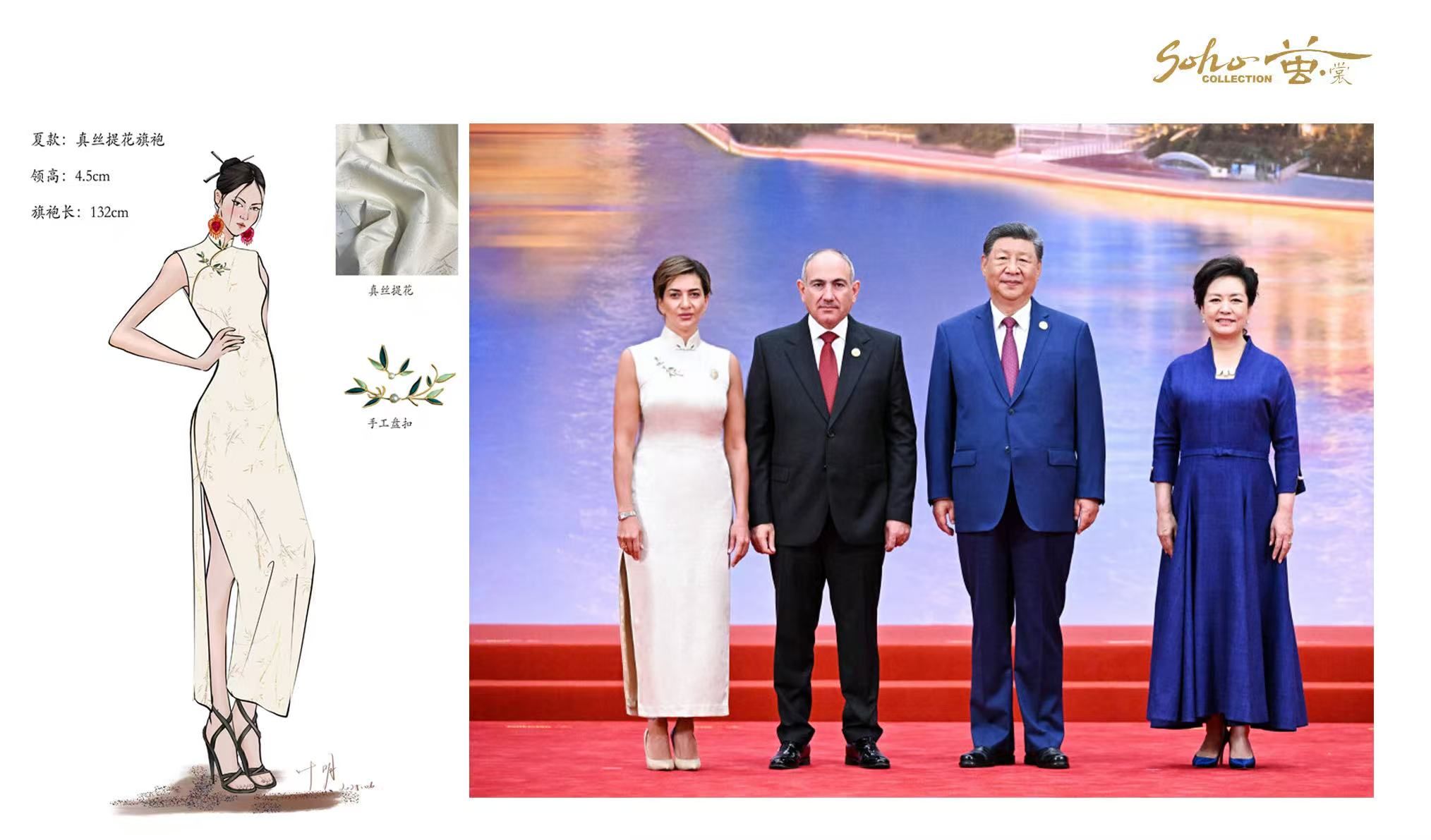 当2025年天津上合峰会晚宴的灯光点亮,亚美尼亚总统夫人身着一袭竹纹旗袍优雅亮相,东方服饰的温婉与庄重惊艳了国际舞台。