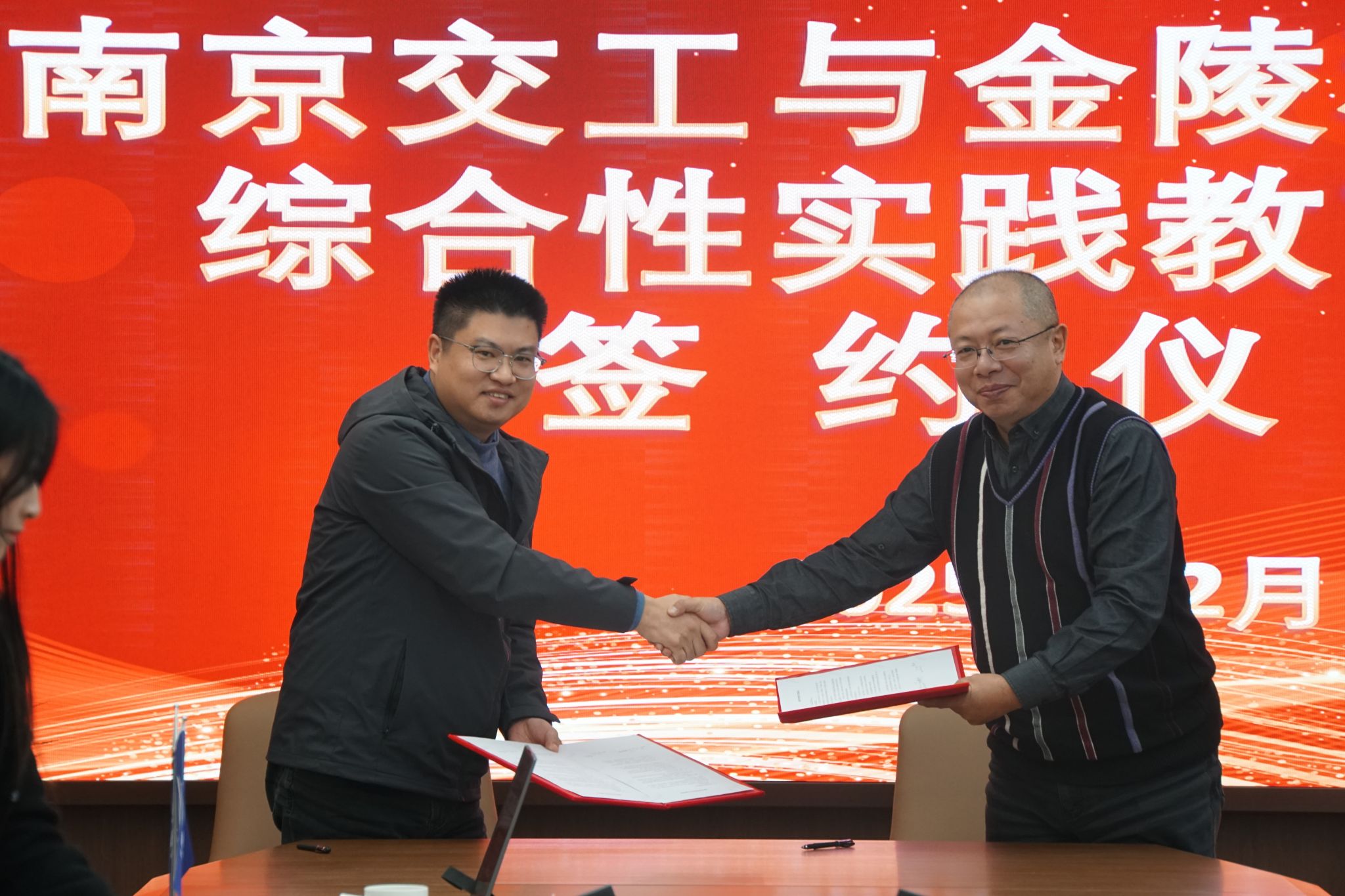会议伊始,与会人员共同观看了建筑工程学院、南京交通工程有限公司的宣传片,直观了解双方在教育教学、工程建设等领域的发展成果与特色。