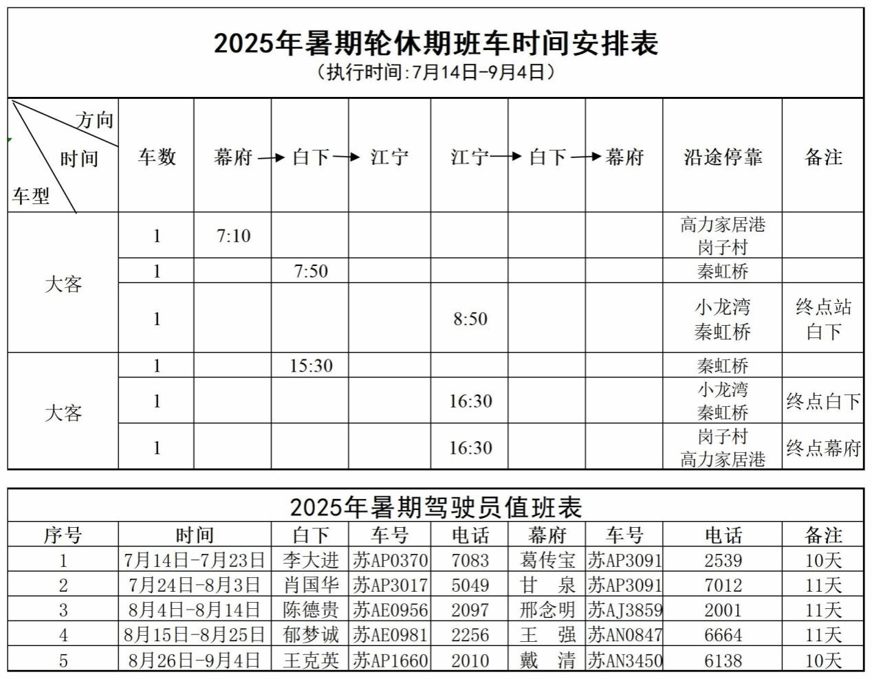根据学校工作安排,现将2025年暑期轮休期班车时间安排公布如下: