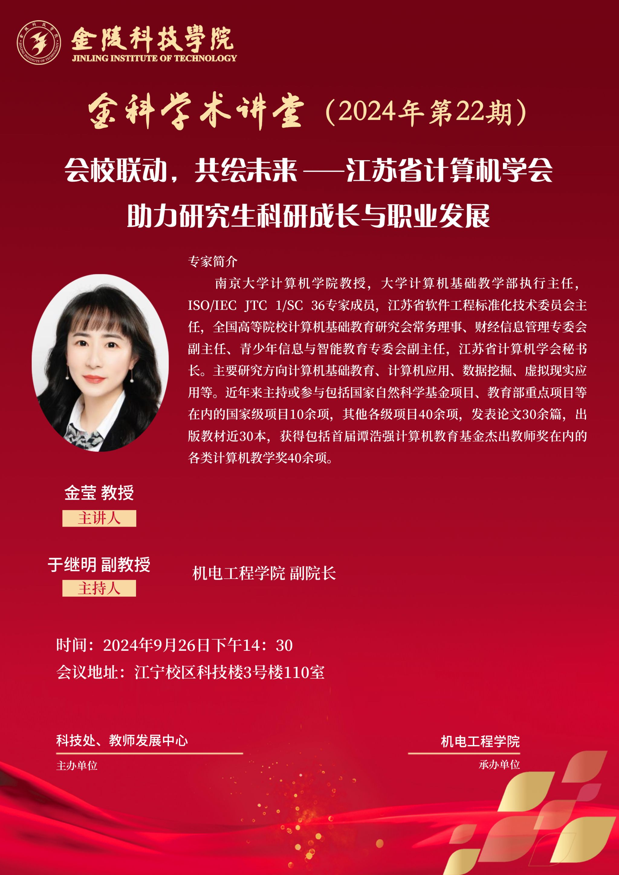 关于举办线下“金科学术讲堂:会校联动,共绘未来——江苏省计算机学会助力研究生科研成长与职业发展”学术报告的通知