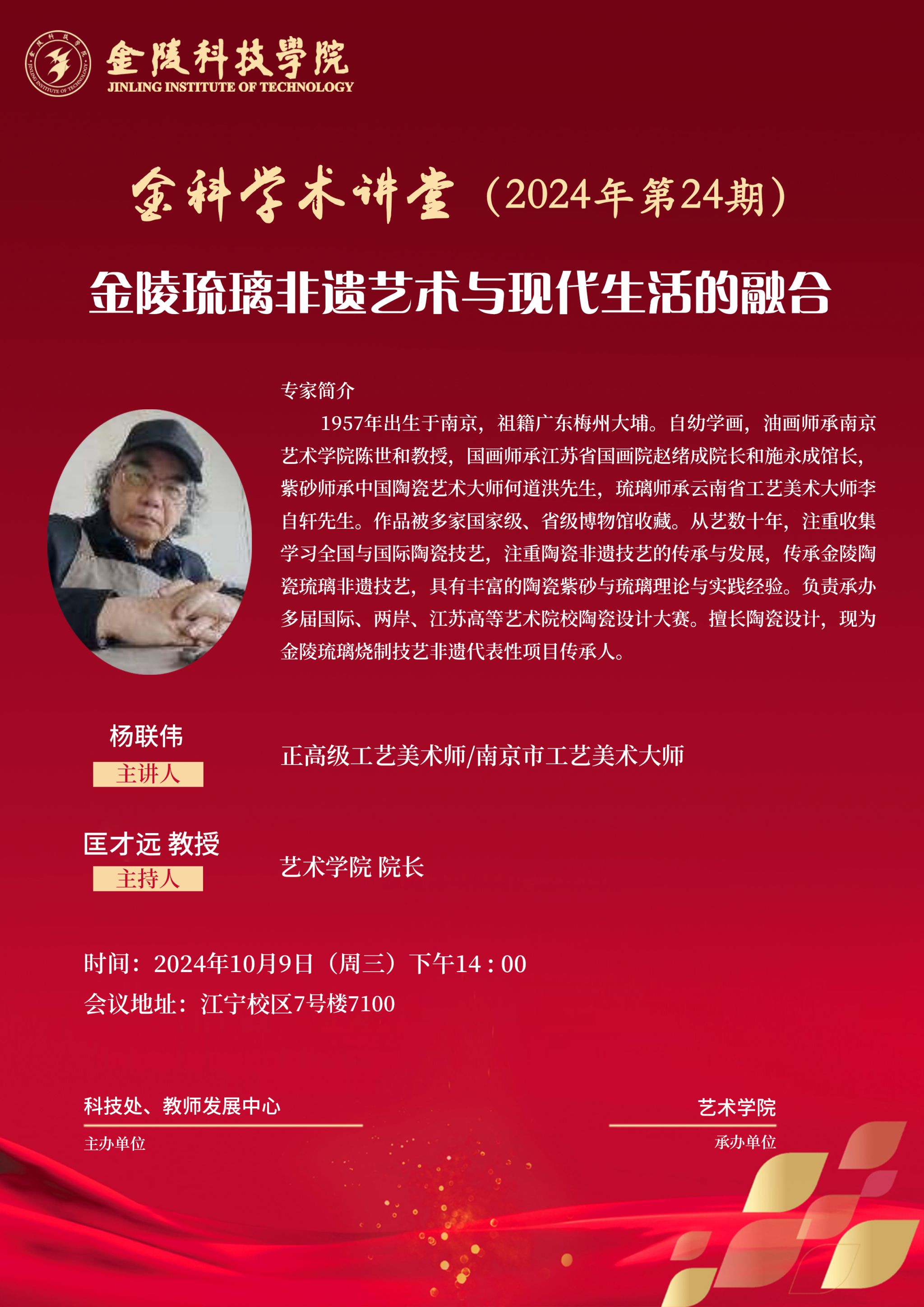 关于举办线下“金科学术讲堂——金陵琉璃非遗艺术与现代生活的融合”学术报告的通知