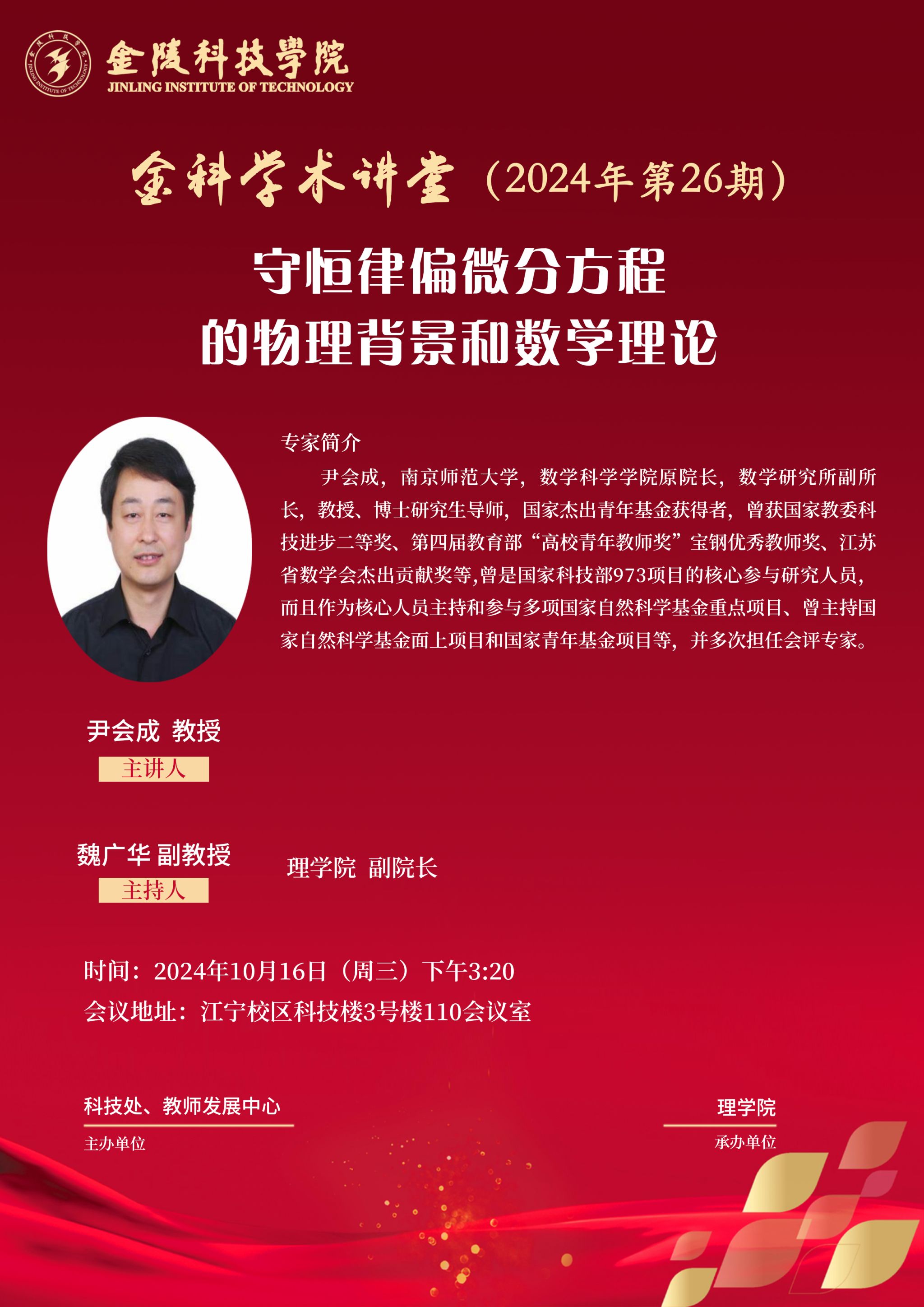 关于举办线下“金科学术讲堂——守恒律偏微分方程的物理背景和数学理论”学术报告的通知
