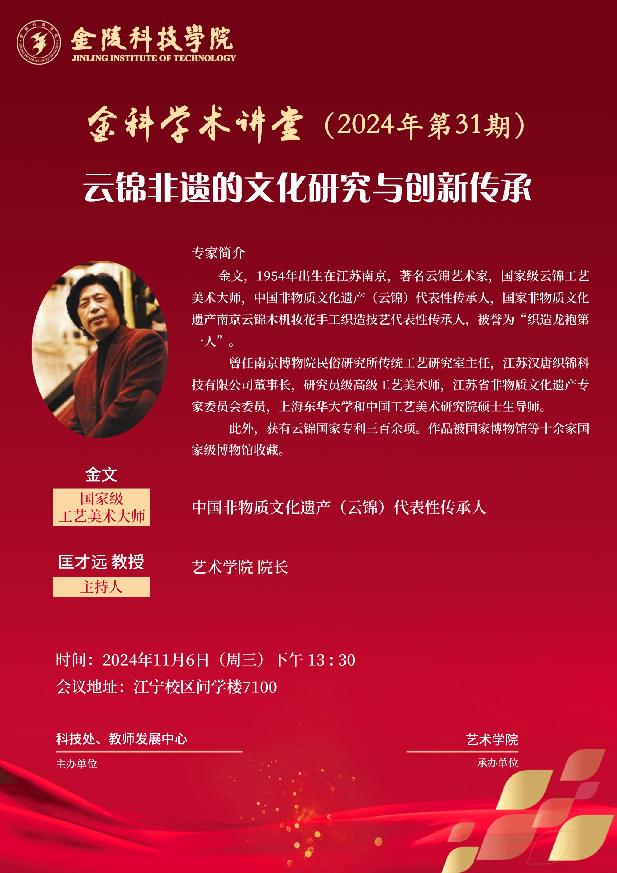 关于举办线下“金科学术讲堂——云锦非遗的文化研究与创新传承”学术报告的通知