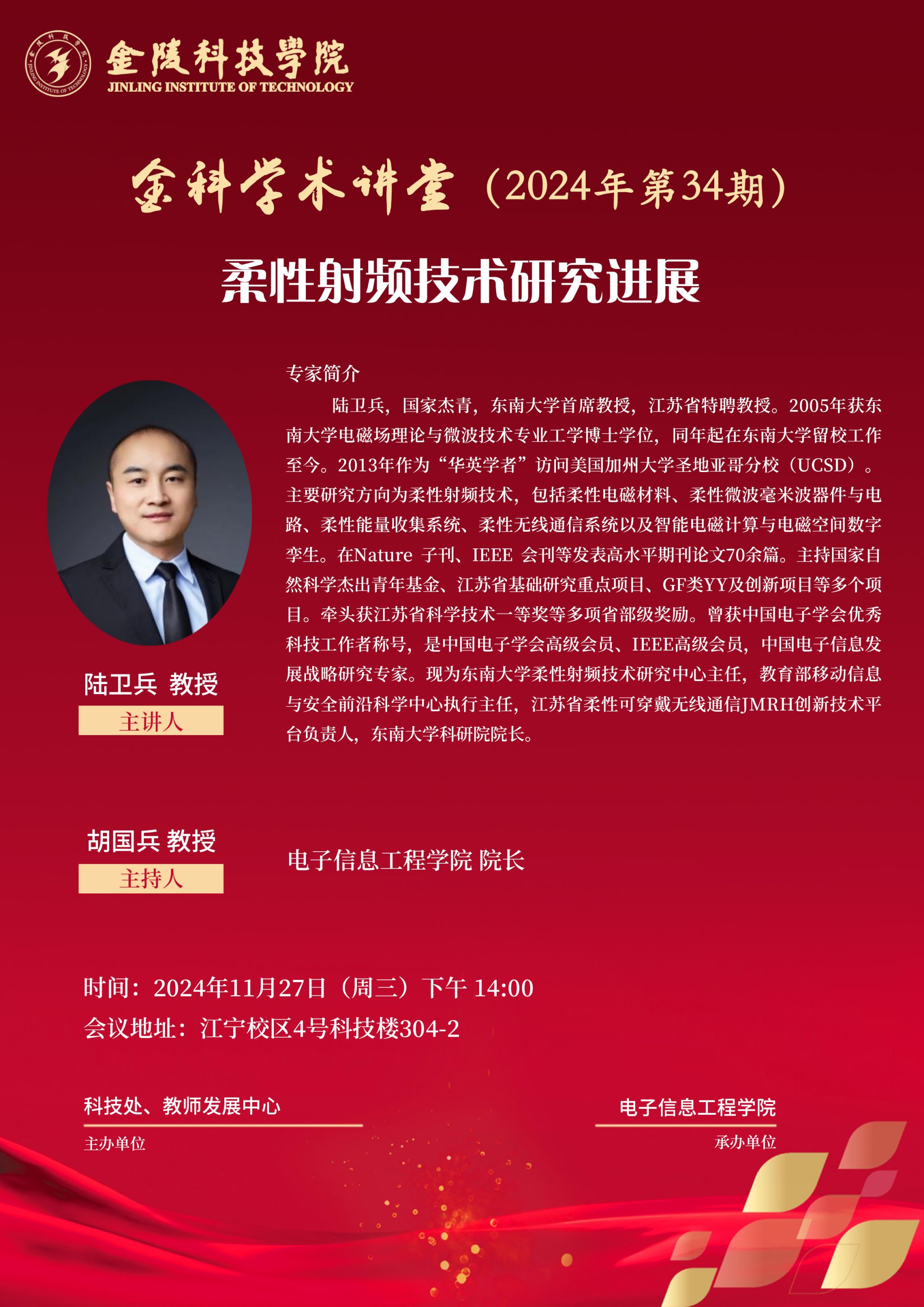 关于举办线下“金科学术讲堂——柔性射频技术研究进展”学术报告的通知
